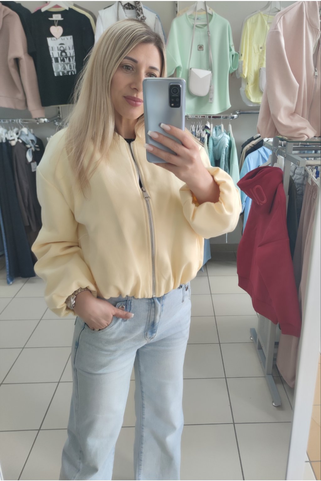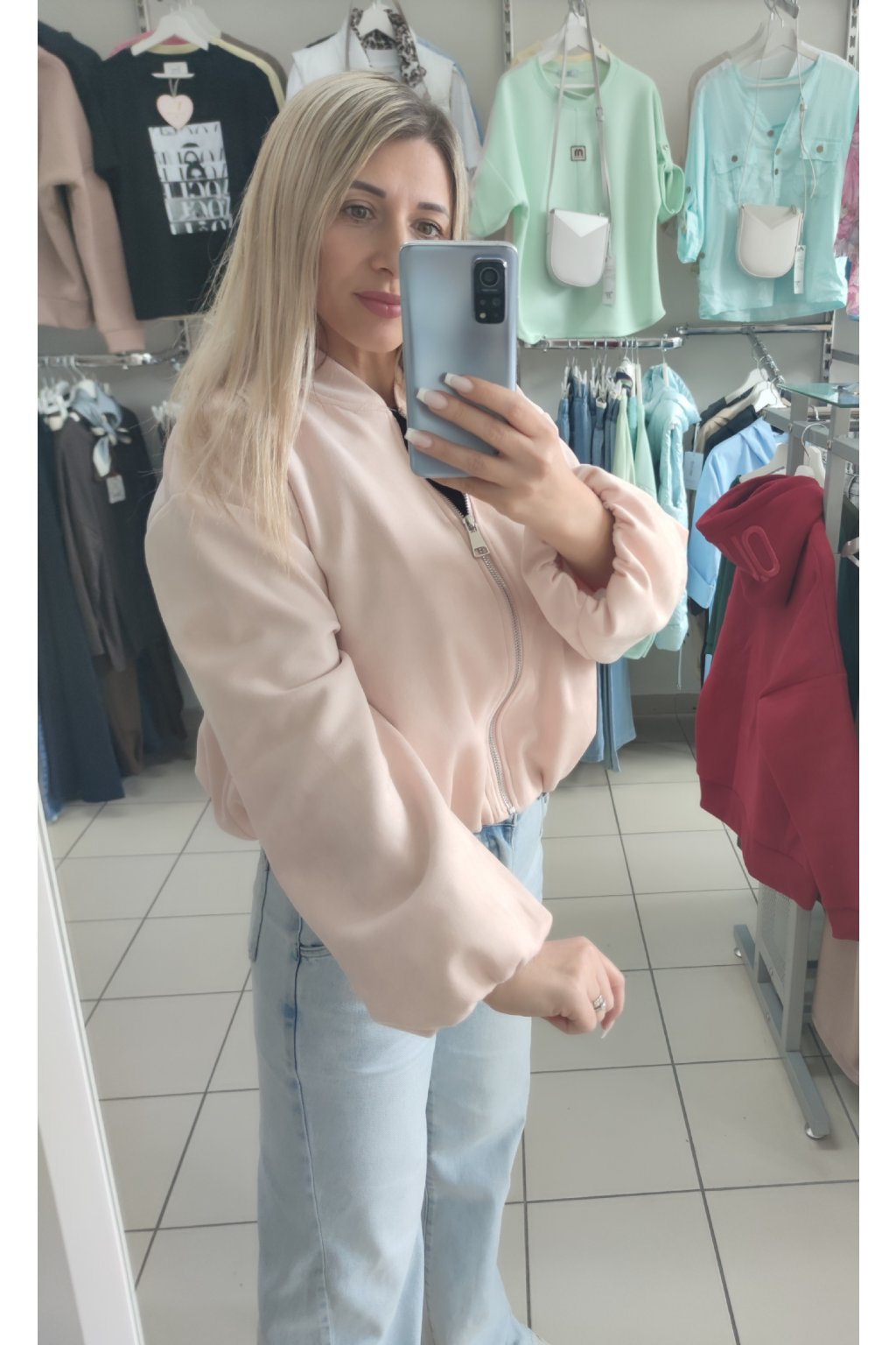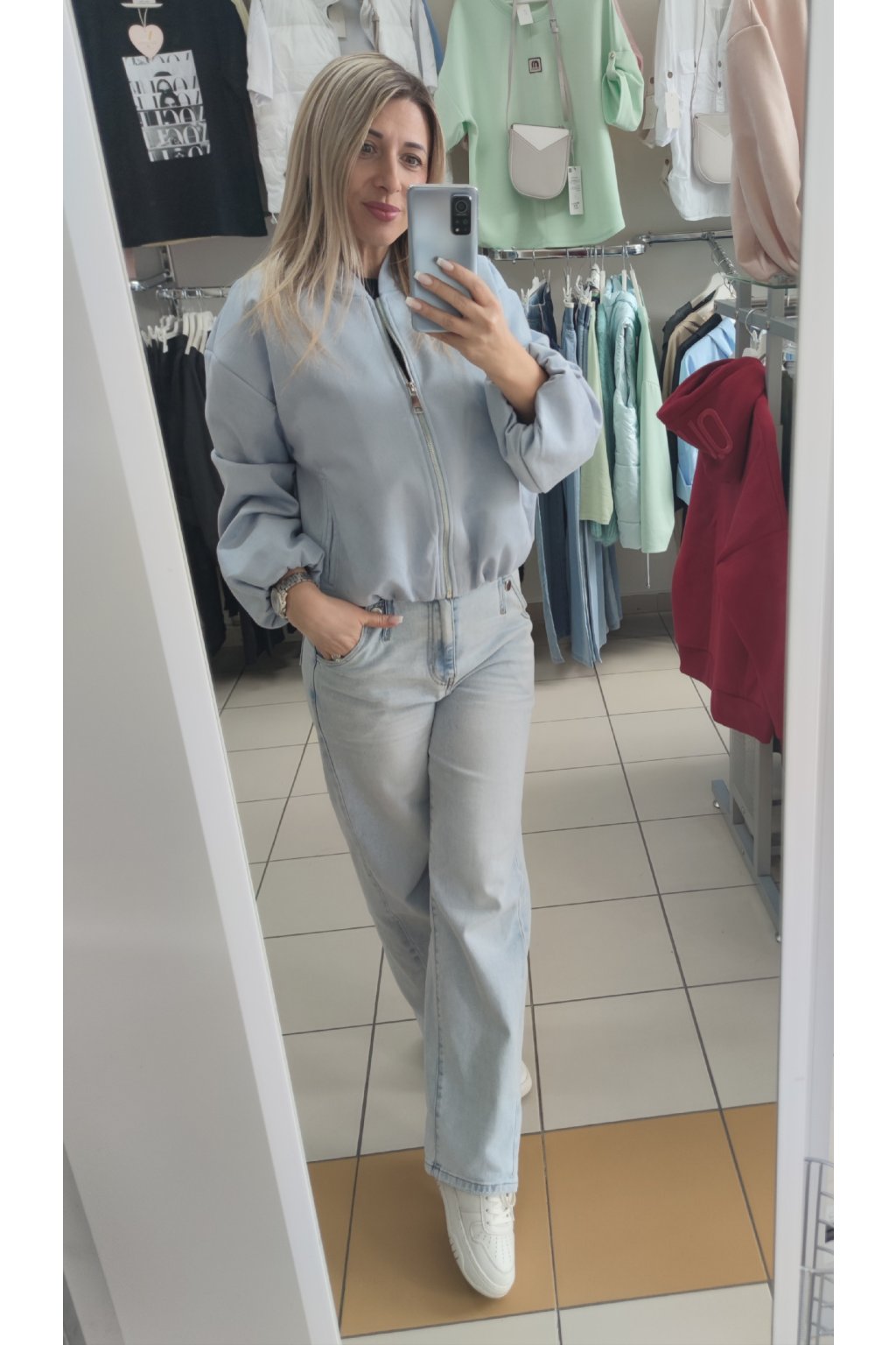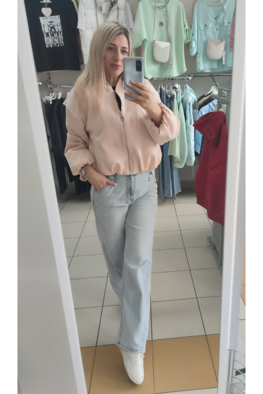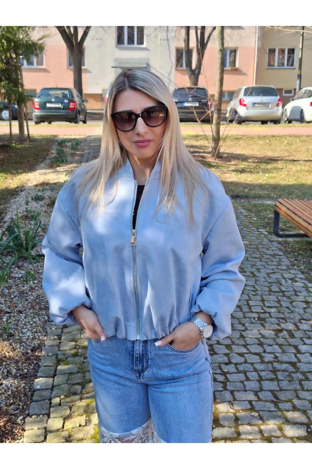 Kratší bomber bundička ve vzhledu broušené kůže.