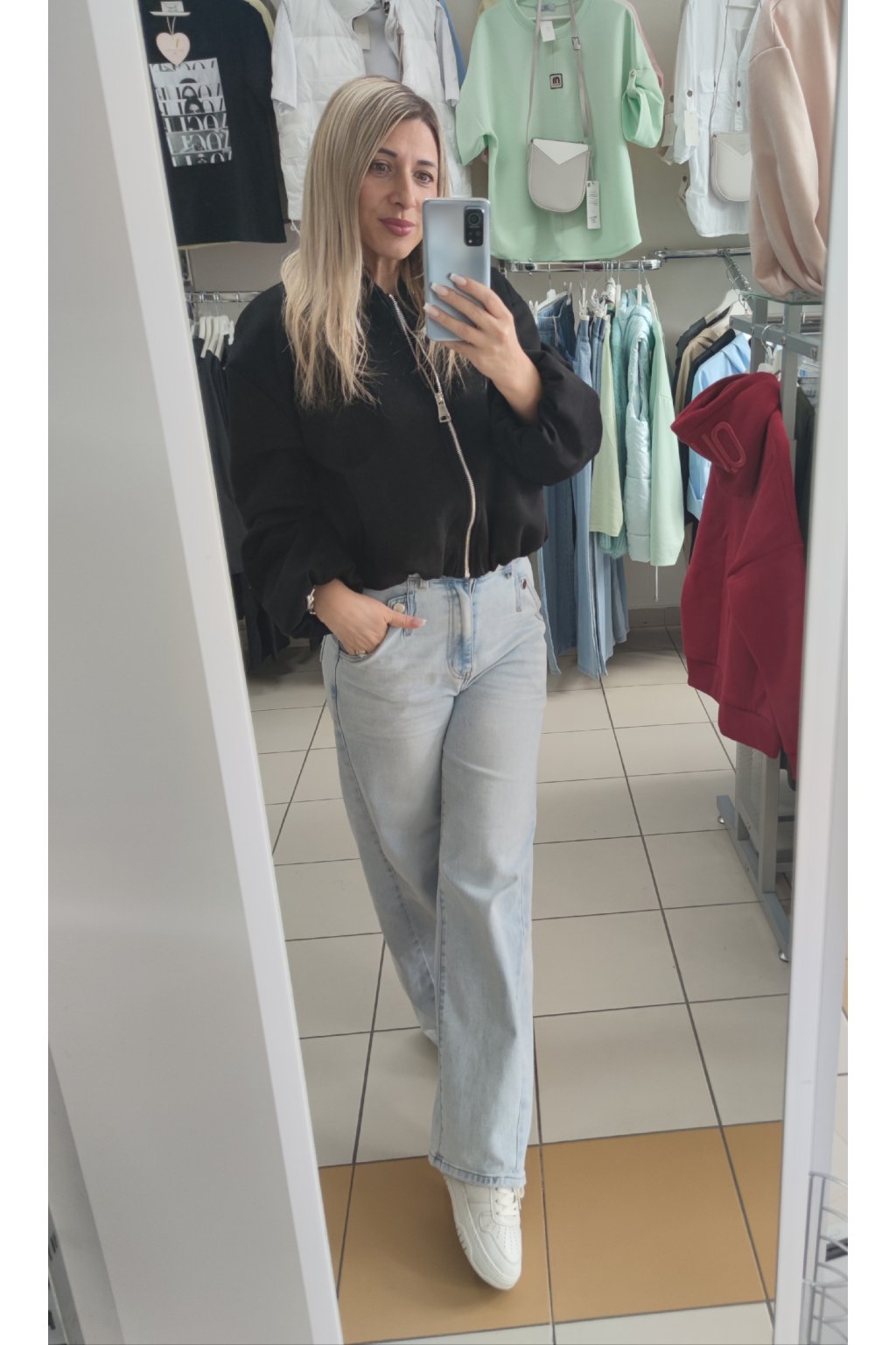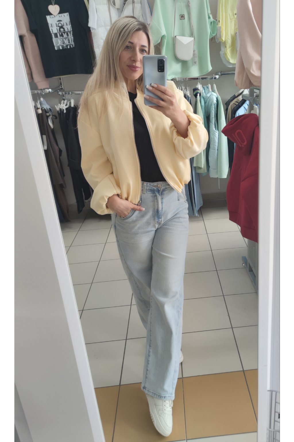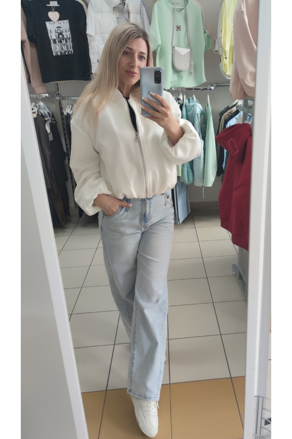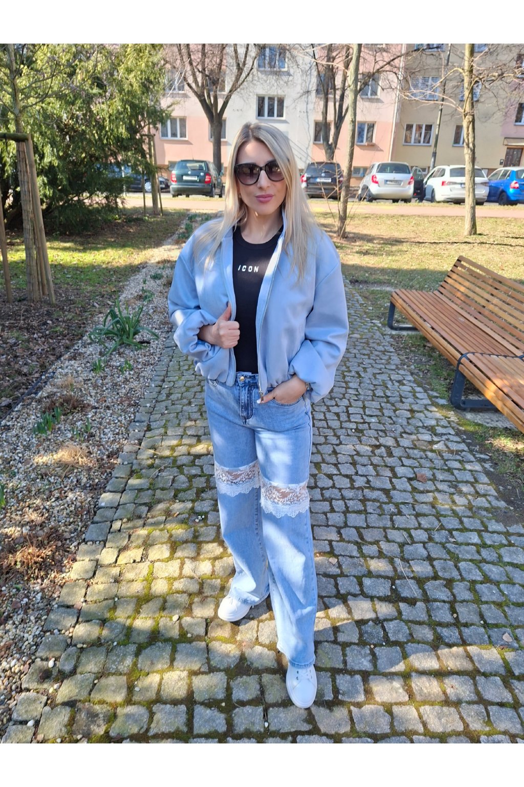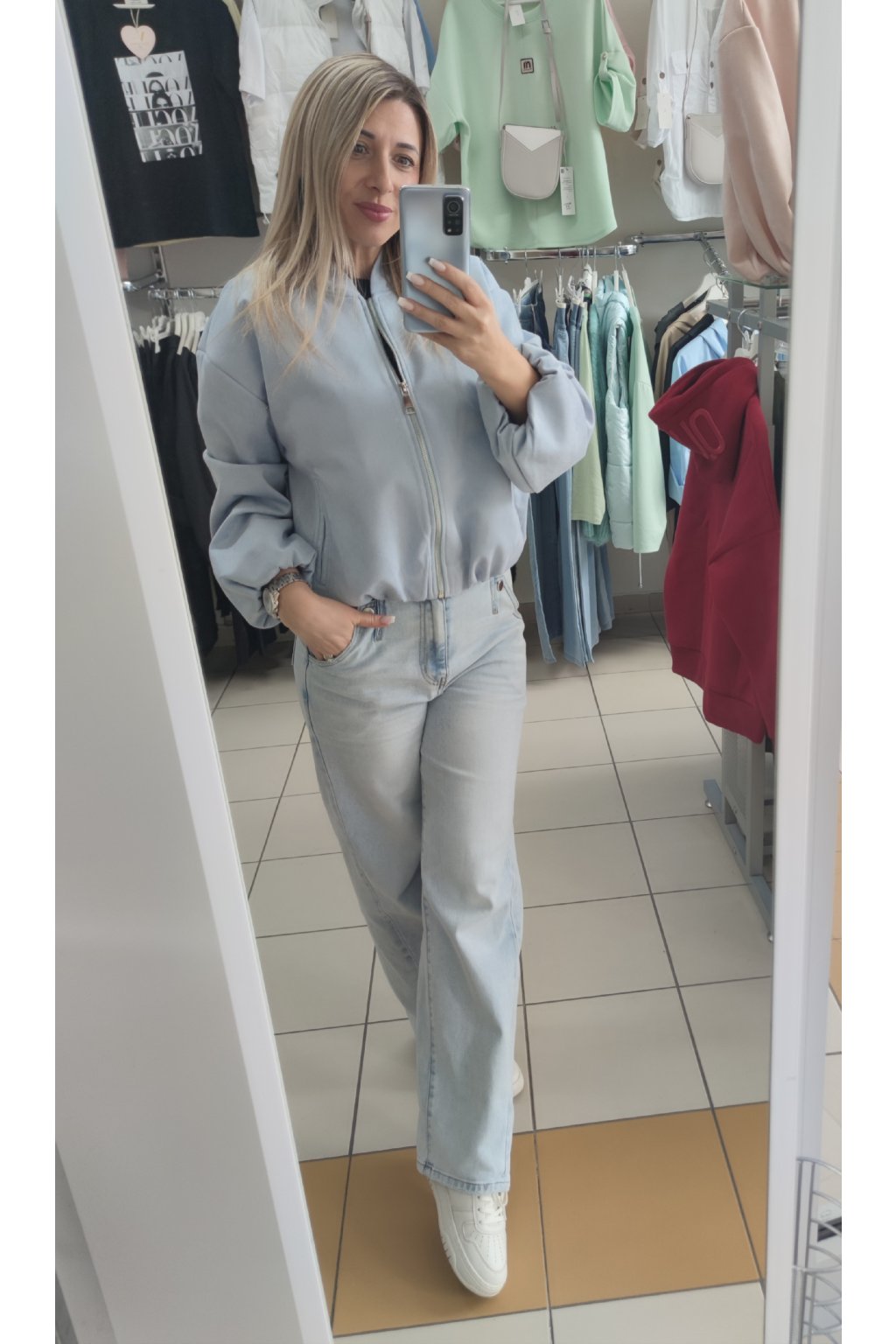 Kratší bomber bundička ve vzhledu broušené kůže.