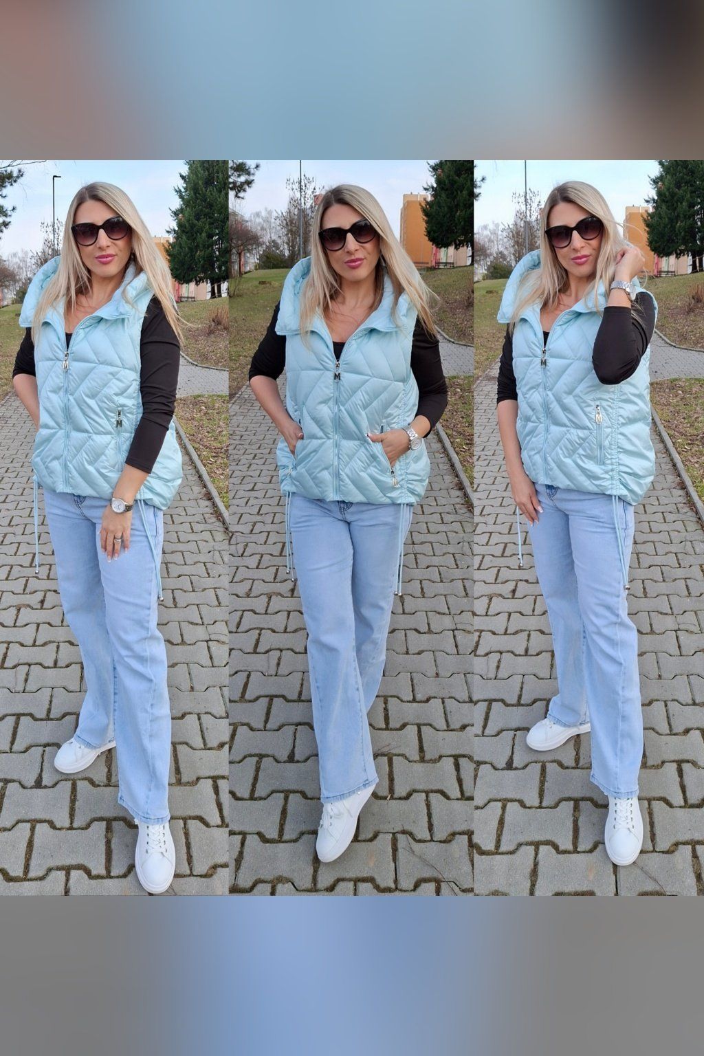 Módní prošívaná vesta asymetrického střihu.