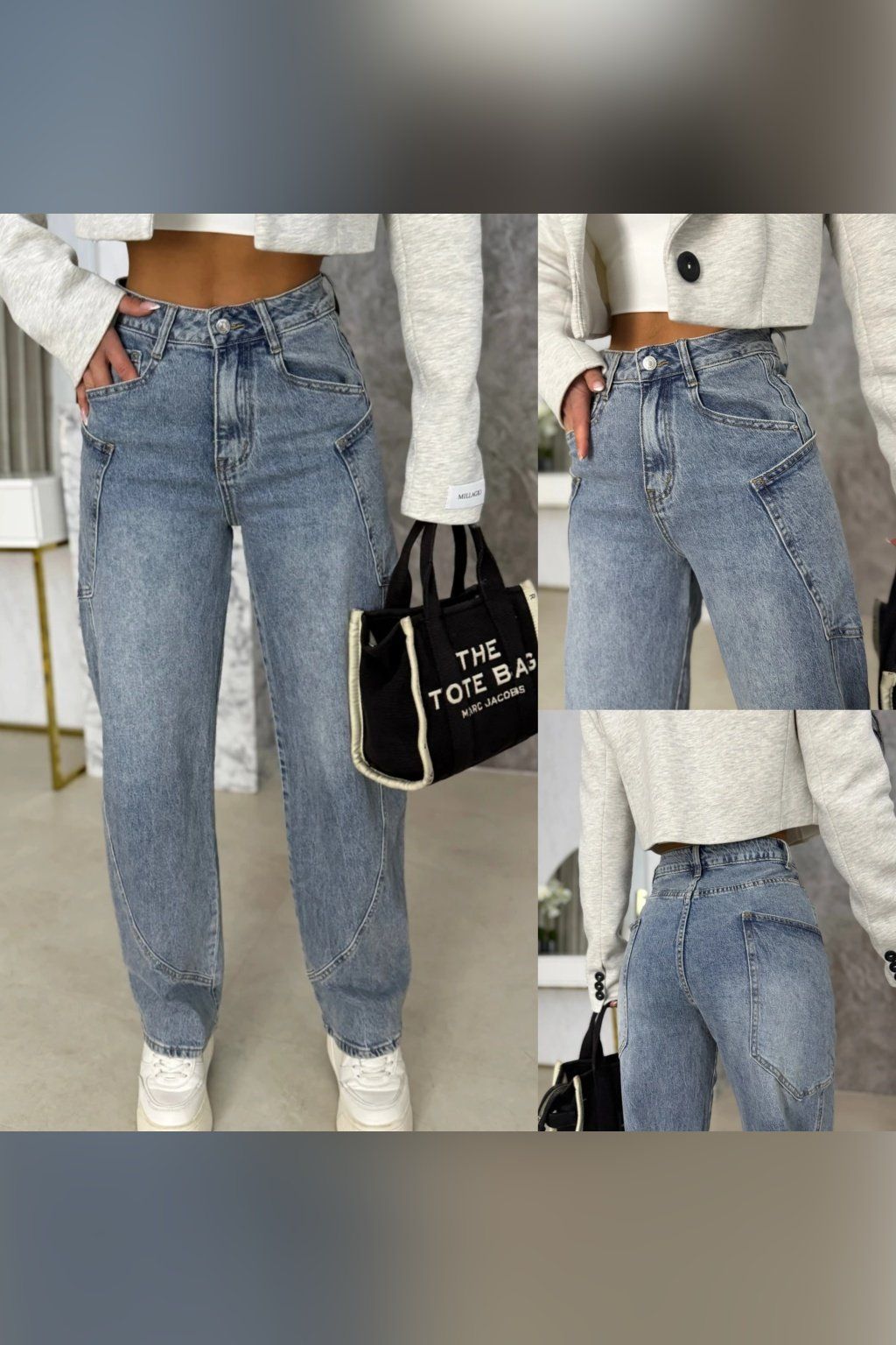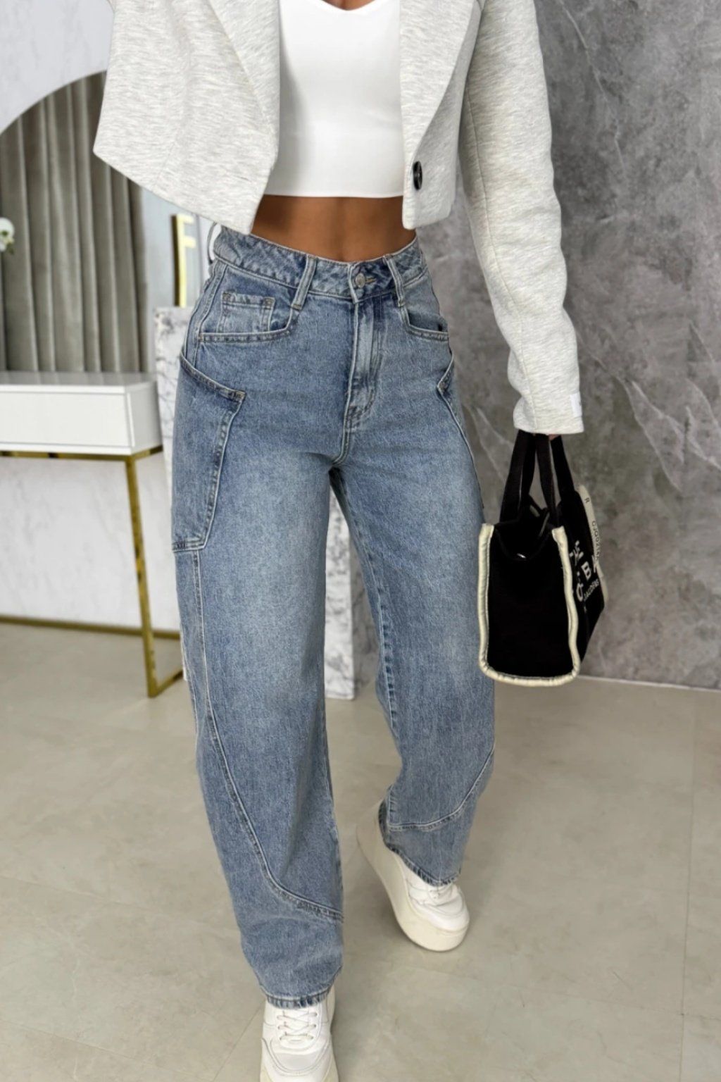 Tyto dámské džíny jsou perfektní volbou pro ženy, které si cení pohodlí a aktuálních trendů. Jsou vyrobeny z vysoce kvalitního modrého denimu a mají široký střih, který umožňuje volný pohyb a dodává siluetě moderní proporce.
