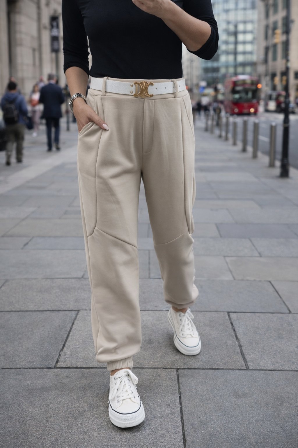 Volnočasové kalhoty s páskem, z oblíbeného máslového materiálu.