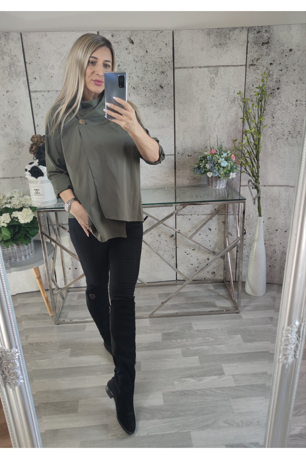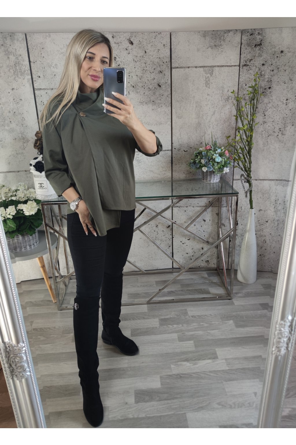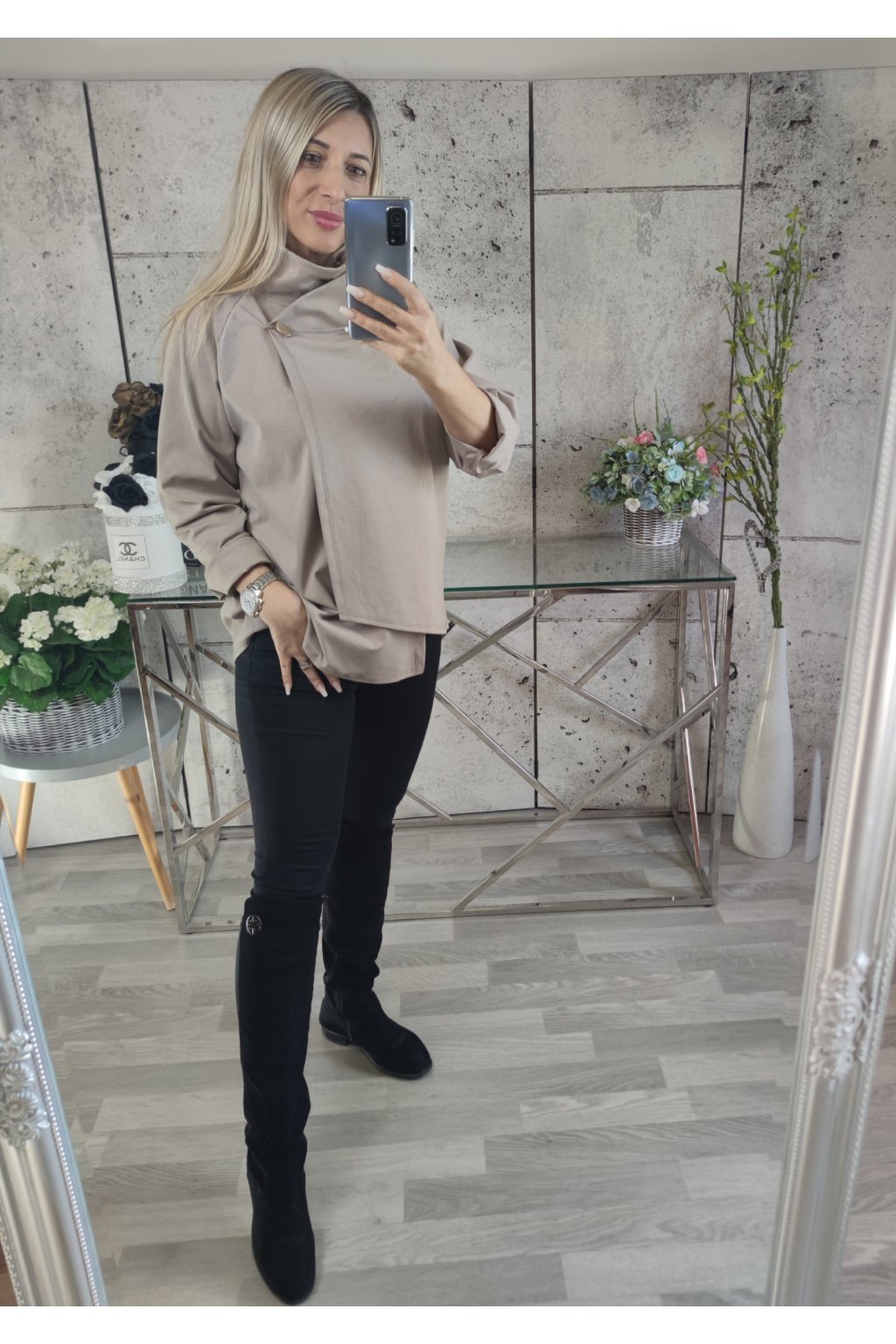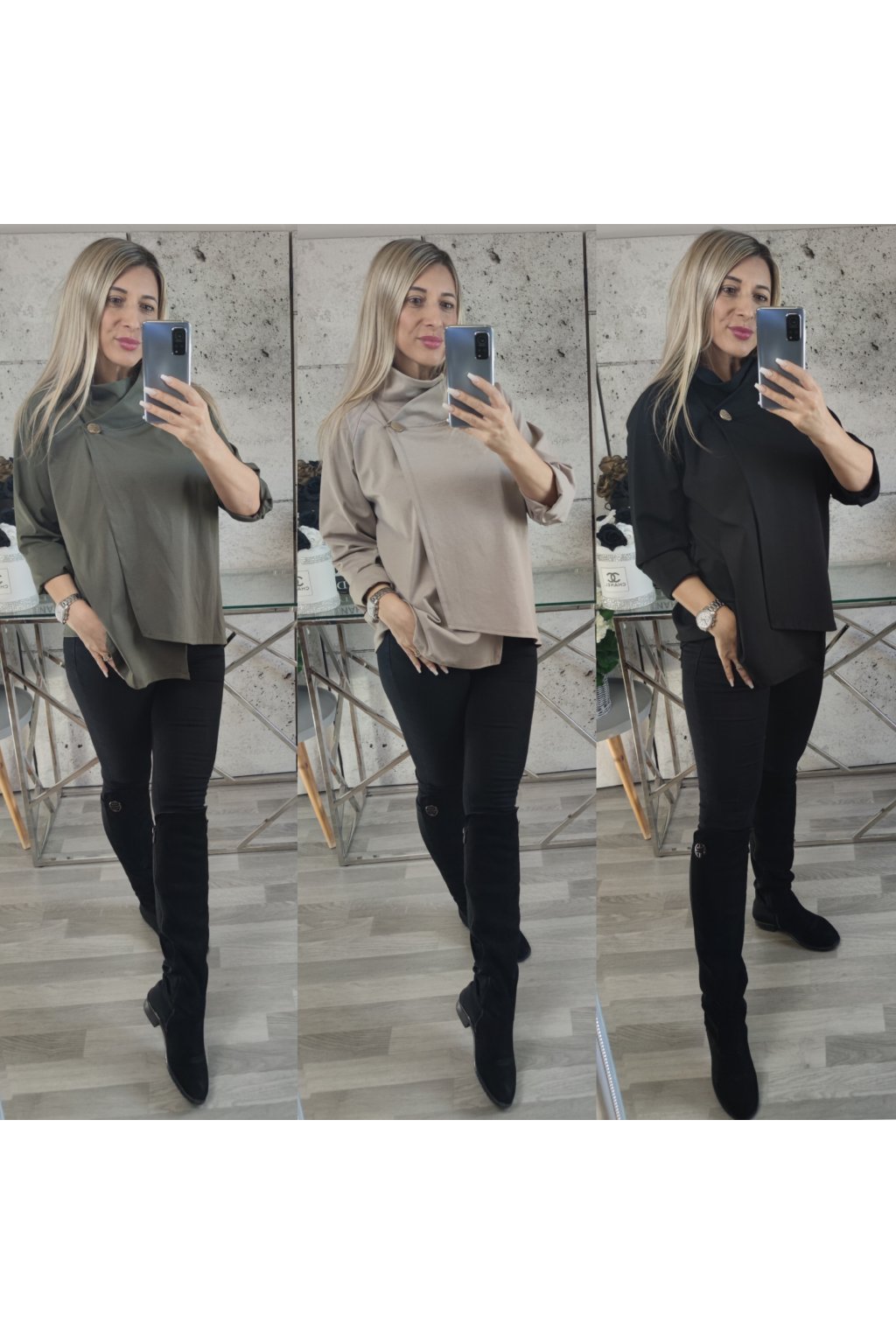 Bavlněné mikinové pončo na zlatý knoflík.