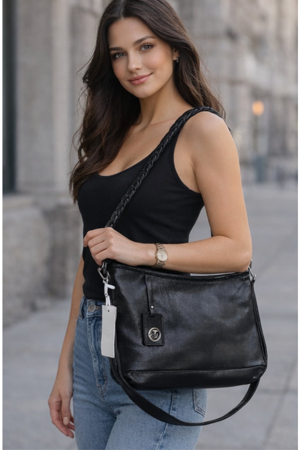 Součástí kabelky je nastavitelný popruh