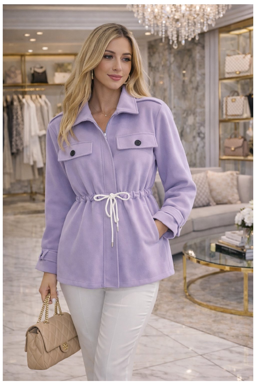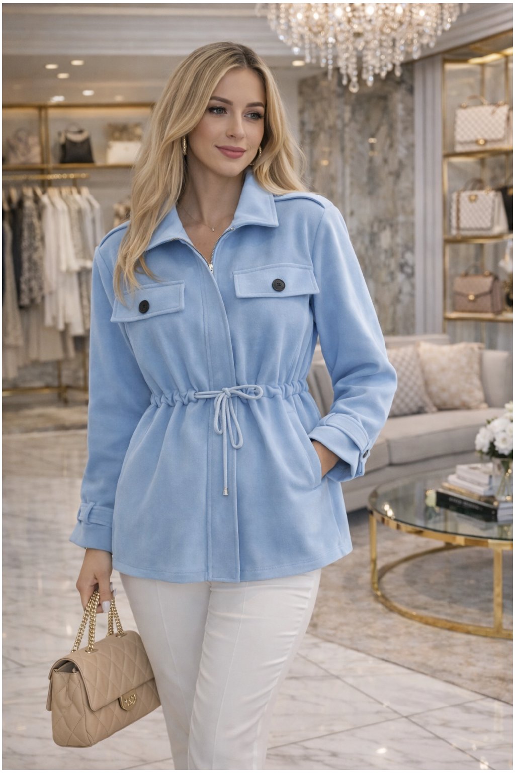 Kabátek ve vzhledu broušené kůže.