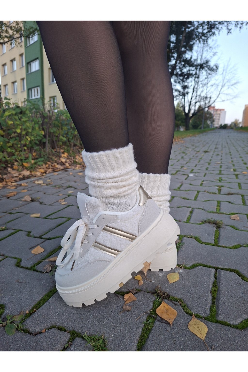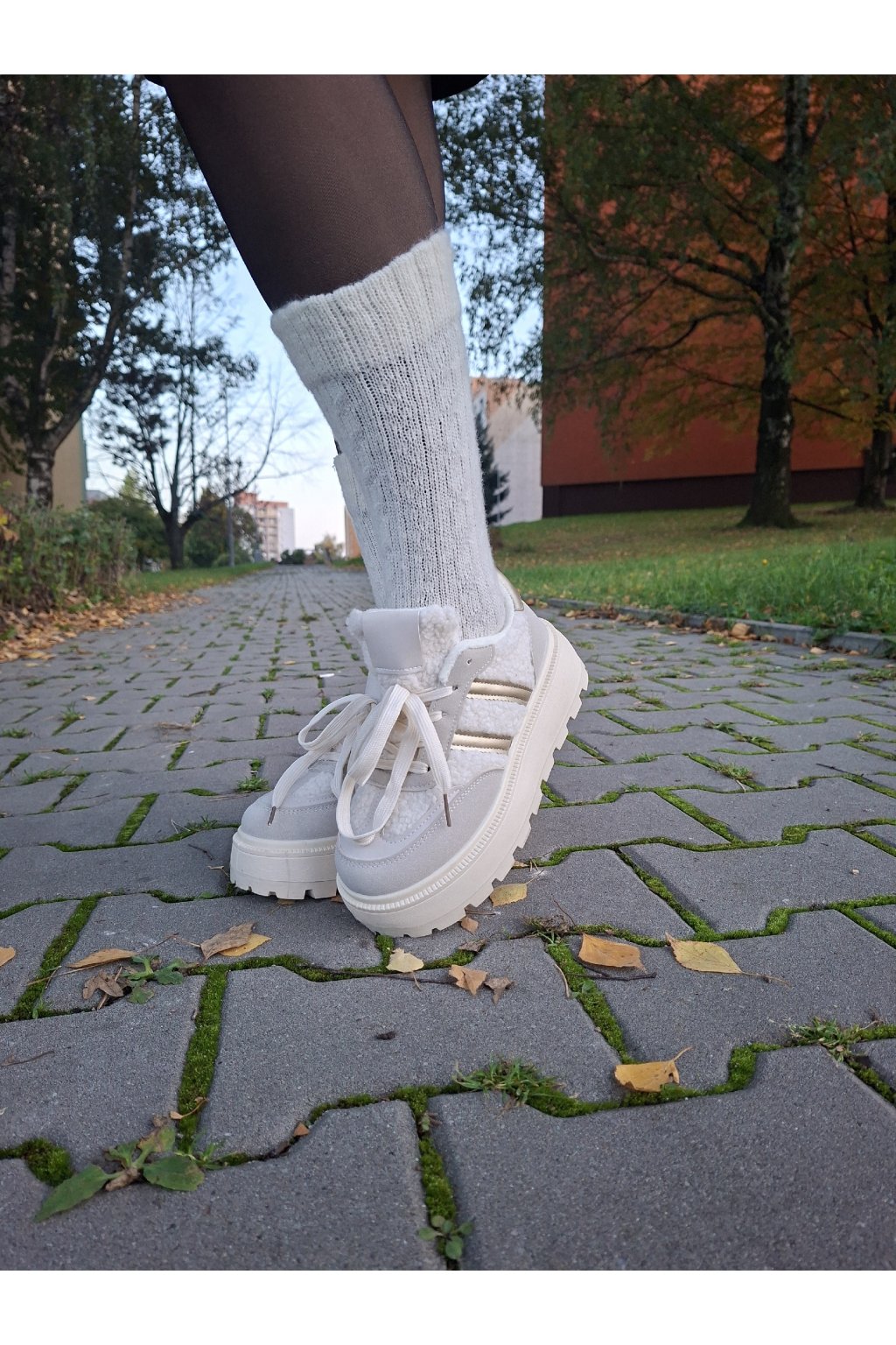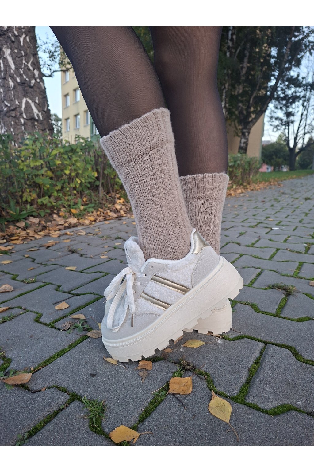 Vlněné ponožky s minimalistickým vzhledem jsou ideální volbou pro podzimní a zimní styling. Model s delším střihem, ozdobně vypletený, dodá stylingu charakter. Tento návrh je vyroben z příjemného, pružného materiálu, který zajistí vaše pohodlí při nošení.