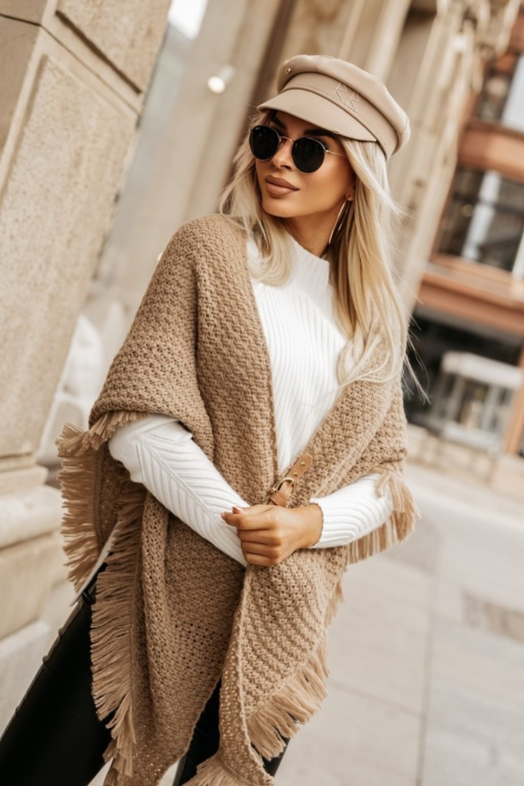 Stylové pončo se sponou , vytvoří dokonalý doplněk pro mnoho outfitu.