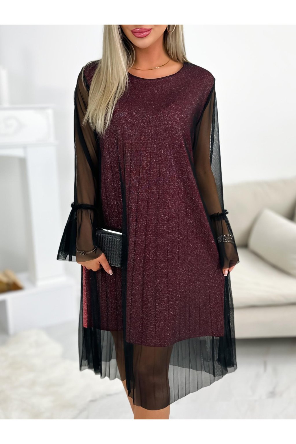 Elegantní, lehce skládané tylové šaty. Volný střih s dlouhými rukávy.