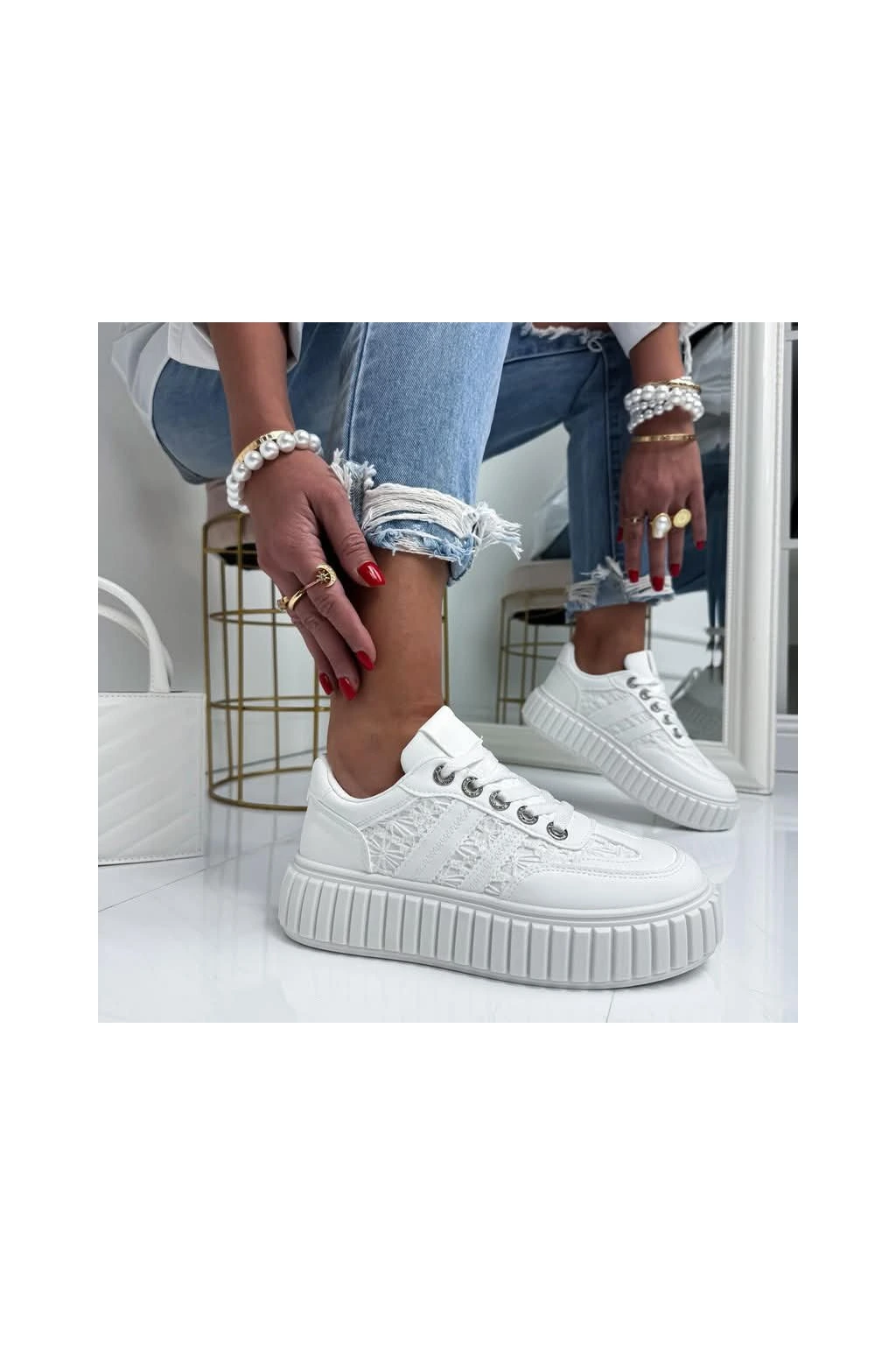 Koženkové tenisky posazené na gumové platformě.